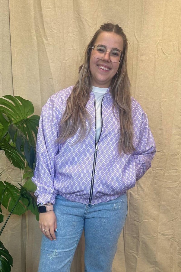 De bomber is one size en kan van maat XS-XL en is verkrijgbaar in roze en lila